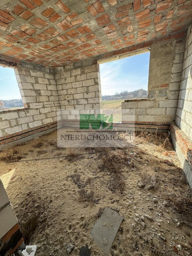 Na posesji znajduje się budynek mieszkalny murowany w stanie surowym